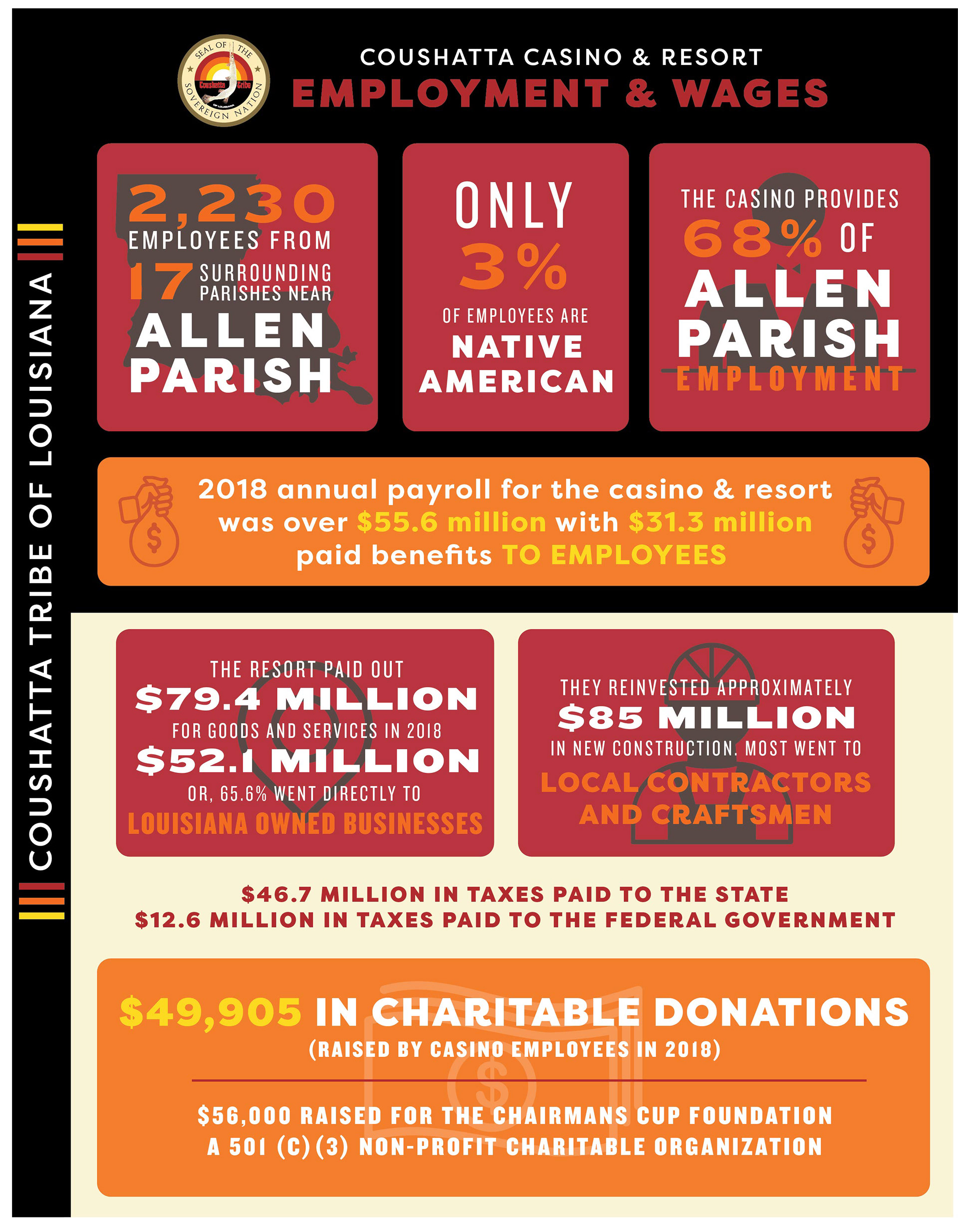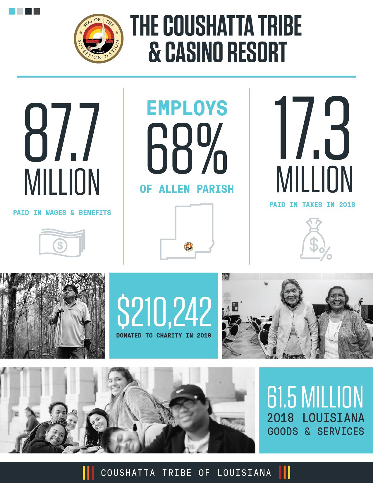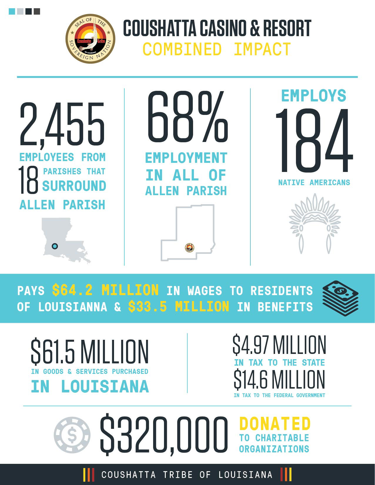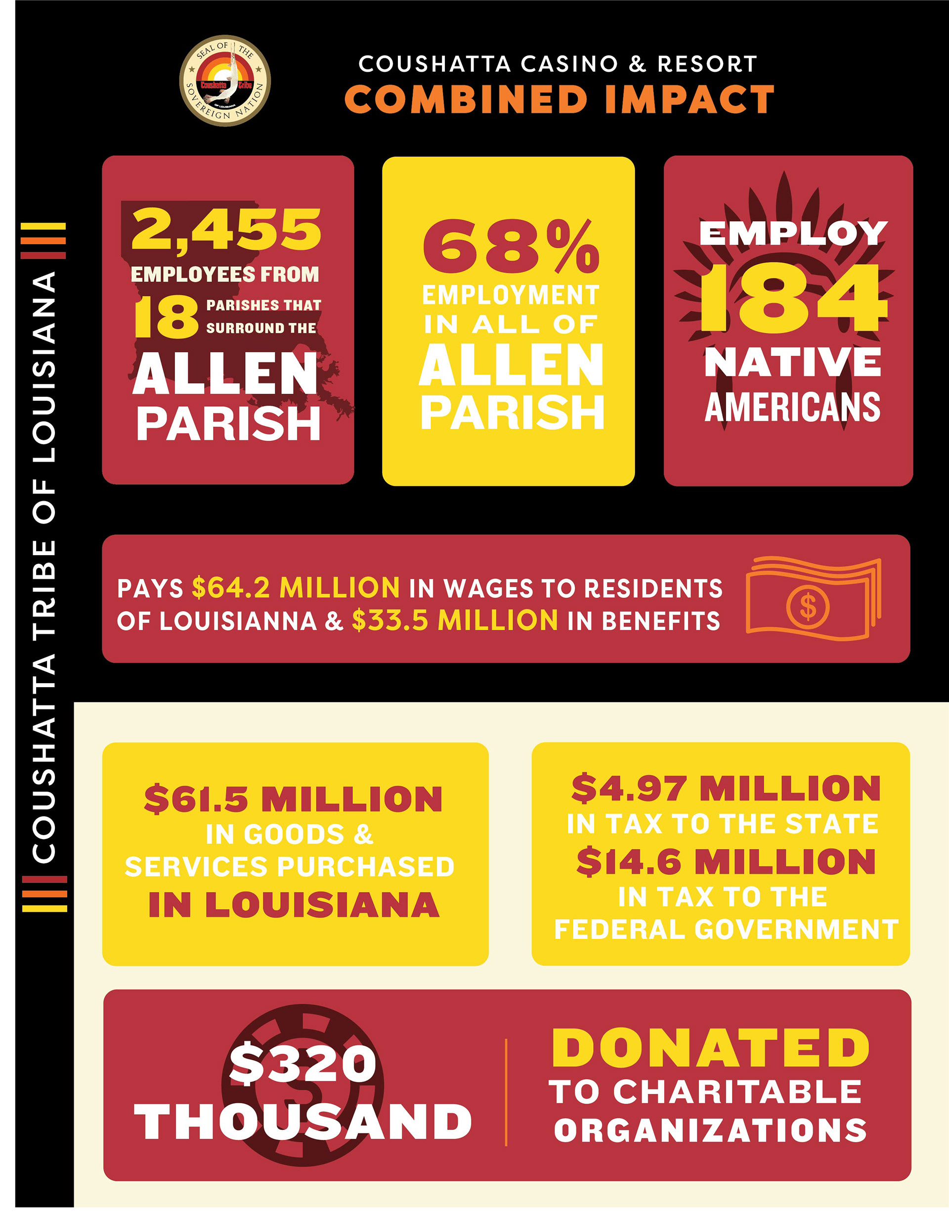 Coushatta Tribe infographics on the impact of the Louisiana Allen Parish.