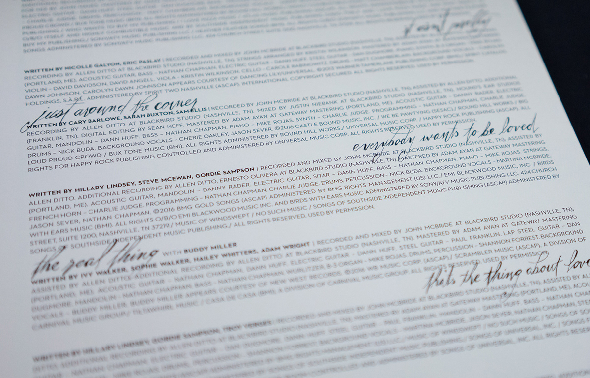 Martina McBride: Reckless album release on Nash Icon Records Martina has delivered a strong, emotionally charged album with Reckless. The songs are lyrically intense and musically powerful. For the visuals for Reckless, Martina wanted to convey strength, confidence and femininity. To achieve her vision, we used emotionally driven photos, soft lighting and hand drawn type. We chose a soft, earthy color palette that draws the viewer in to the image. The textures applied to the photos give the images a sophistication that is descriptive of Martina. Album Package Artistry: Photographer: Joseph Llanes Art Direction: Big Machine Label Group Creative: Sandi Spika Borchetta, Becky Reiser Graphic Design: Karinne Caulkins Wardrobe: Courtney Kivela Robinson Hair & Make-Up: Melanie Shelley Additional Credits: Nicole Flammia - Creative Director | Video + Photo Production Seth Hellman - Creative Coordinator